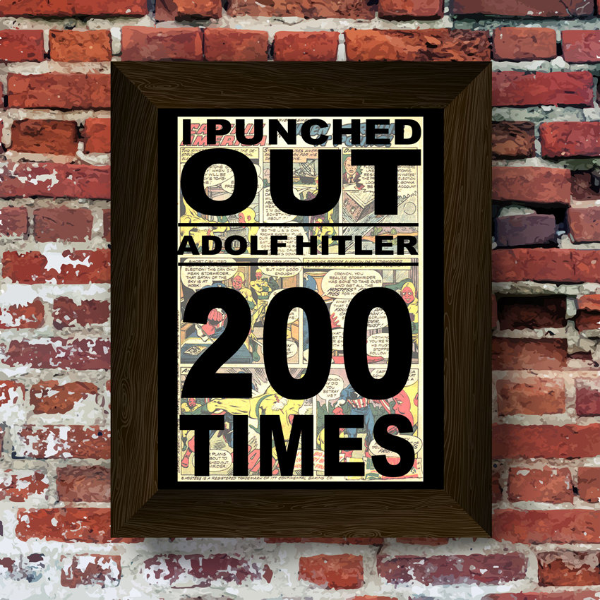 Captain America 200 Punches quote Super Hero Upcycled vintage comic book art print. #0024